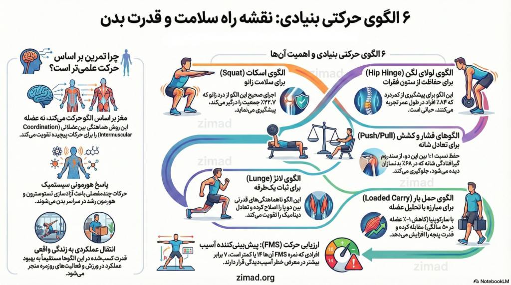 تحلیل جامع فیزیولوژیک و بیومکانیک الگوهای حرکتی ششگانه انسان